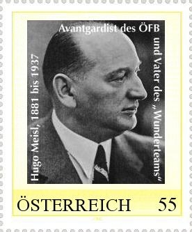 Anhand der Fußball-Europameisterschaft in Österreich und der Schweiz sorgt diese Briefmarke zum Gedenken an Hugo Meisl. Dieser war ein ganz großer Funktionär und Wegbegleiter des Österreichischen Fußballsports und beim ÖFB/Österr. Fußballbund. Hugo Meisl war nicht nur der Vater des so genannten Wunderteams der 30iger Jahre, er war auch als Funktionär ein Vorreiter und Ideengeber des internationalen Fußballs. Die Grundidee zur heutigen Champions-League stammte beispielsweise von ihm. Hugo Meisl lebte von 1881 bis 1937 und fand am Wiener Zentralfriedhof (Jüdischer Teil) seine letzte Ruhe.
