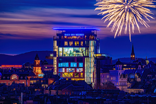 Hoch über den Lichtern der Stadt bietet das 360° OCEAN SKY, auf dem Dach des Haus des Meeres, am 31. Dezember 2025 einen unvergesslichen Abend voller Genuss, Stil und Magie für maximal 100 Gäste.