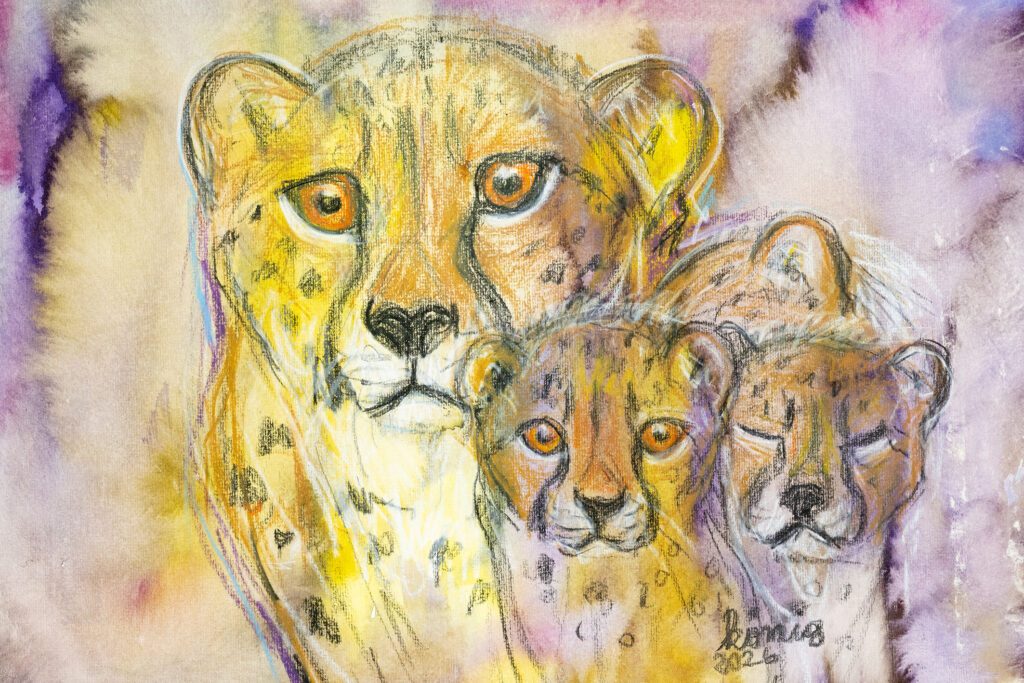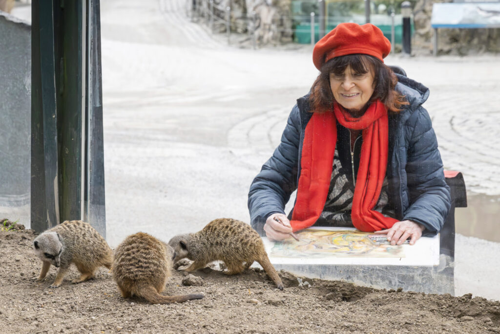 Margit König ist davon überzeugt, dass sie das „schönste Atelier der Welt“ hat. Seit nunmehr 35 Jahren pilgert die Künstlerin beinahe täglich in den Tiergarten Schönbrunn. In ihrer Jubiläumsausstellung, die vom 25. März bis 8. April im Elefantenhaus des Tiergartens zu sehen ist, präsentiert sie ihre neuesten Arbeiten. Jedes Werk erzählt eine Geschichte. „Bei den Geparden habe ich einen innigen Moment festgehalten. Die Jungtiere haben sich gerade an ihre Mutter gekuschelt. Einer ist schon eingeschlafen, der zweite hat noch neugierig hergeblinzelt“, erzählt König. Gerade wenn neue Tierarten einziehen, packt sie die Motivation besonders. „Die Goldtakine, die seit letztem Jahr erstmals in Schönbrunn zu sehen sind, sind schnell zu einem meiner Lieblingsmotive geworden. Diese imposanten Tiere sind einfach faszinierend.“