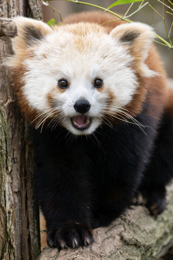 Rote Pandas bewohnen Gebirgs- und Bambuswälder im östlichen Himalaya und im Südwesten Chinas. Dort herrschen teils eisige Temperaturen. Rote Pandas sind mit ihrem dichten Fell jedoch bestens an kühles Wetter angepasst. Die Tiere kommen daher auch mit dem derzeitig wechselhaften Frühlingswetter in Wien sehr gut zurecht. „Das Männchen und das Weibchen sind einfach zu unterscheiden, das Weibchen hat eine deutlich hellere Gesichtszeichnung. Rote Pandas gelten leider als stark gefährdet. Besonders die Abholzung von Wäldern und Wilderei sind für den Rückgang dieser Tierart verantwortlich“, erläutert Rupert Kainradl, MSc., zuständiger Kurator im Tiergarten. Mit dem Großen Panda sind Rote Pandas trotz ihres Namens nicht näher verwandt. Sie bilden ihre eigene Familie: die Katzenbären. Näher sind Rote Pandas etwa mit den Waschbären oder den Nasenbären verwandt, die wiederum zur Familie der Kleinbären gehören.