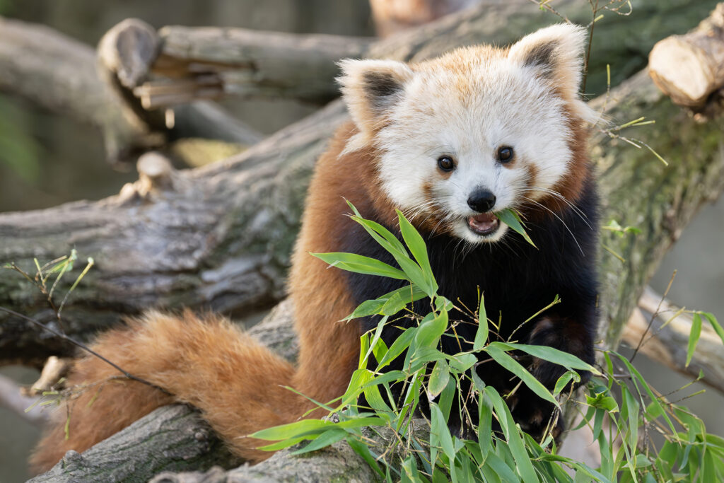 Wer den Neuzugang beobachten möchte, muss meist hoch nach oben schauen: Ähnlich wie sein männlicher Artgenosse, hält sich das Weibchen besonders gerne in den Bäumen auf. Dort klettern und ruhen die beiden Roten Pandas regelmäßig. Hering-Hagenbeck: „Rote Pandas sind ausgezeichnete Kletterer. Ihre scharfen Krallen und behaarten Sohlen geben den Tieren sicheren Halt, während der buschige Schwanz ihnen dabei hilft, das Gleichgewicht zu halten.“