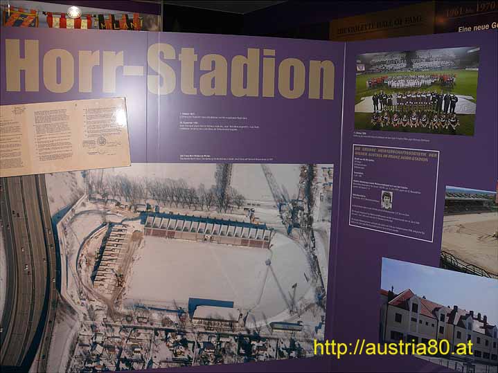 Anlässlich des 500. Meisterschaftsspieles des FK Austria Wien im Franz Horr-Stadion zu Wien-Favoriten am Sonntag, 8. August 2010 wurde eine diesbezügliche Sonderausstellung im FAK-Museum eröffnet. Eben diese wurde von der violetten Galionsfigur Herbert Prohaska, der just an jenem Tag seinen 55. Geburtstag feierte, vorgenommen. Die Ausstellung zeigt die Entstehung des Fußballs in Favoriten im Allgemeinen und die Niederlassung der Austria in diesem Bezirk im Besonderen.