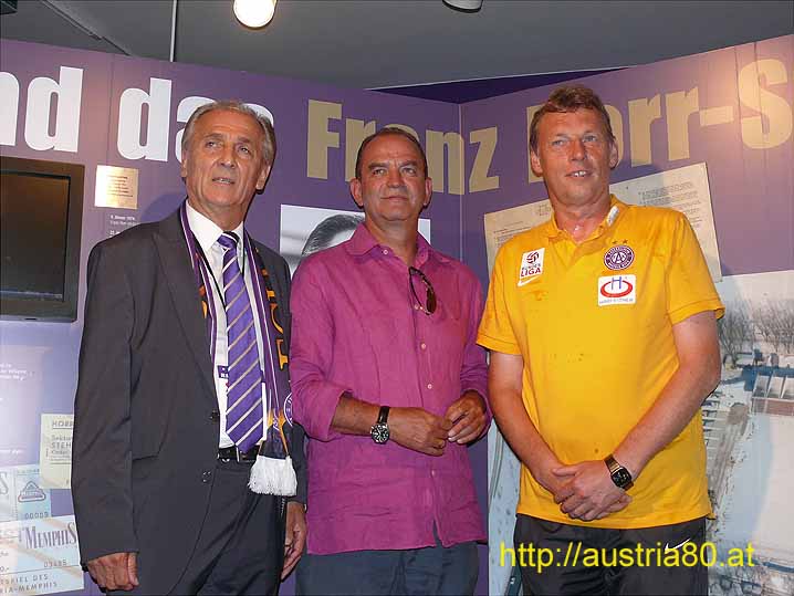 Veilchen unter sich: V.l.n.r.: FAK-AG Vorstand Thomas Partis, Herbert Prohaska, FAK-Trainer Karl Daxbacher Alle Fotos: austria80.at