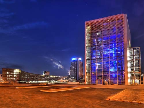 Ein architektonisch interessantes und überaus sehenswertes Bürogebäude ist die neue Verkaufs- und Finanzzentrale der voestalpine AG in Linz. Auf einer Grundstücksfläche von 36.700 Quadratmetern entstanden 11.600 Quadratmeter Nutzfläche. In dem fünfgeschossigen Gebäude mit bogenförmigem Grundriss sind 430 Mitarbeiter beschäftigt. Das Konferenzzentrum liegt im 4. Obergeschoss und bietet einen Blick über das gesamte Areal. Eine Freiterrasse liegt im auskragenden Teil des Bogens. Die Dachflächen sind begrünt.