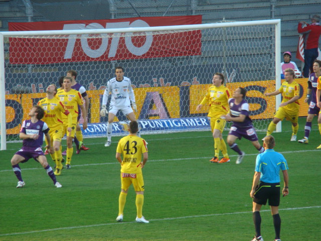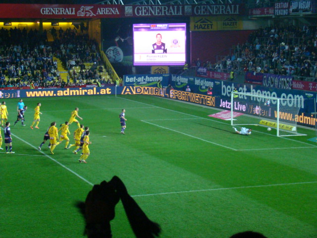 Das 2 : 0, abermals durch den Tschechen Jun, rundete einen gelungen Abend in Violett gekonnt ab. Er überlief die KSV-Abwehr, umkurvte Wolf und schob die Kugel ins leere Tor – in der Nachspielzeit nach 91 Minuten. Diese beiden Treffer von Tomas Jun ließen auch den vergebenen Elfmeter von Florian Klein beim Stand von 0 : 0 in der 62. Minute vergessen. Raphael Wolf rempelte Marko Stankovic im Strafraum und stieg ihm auch noch hinten auf den Fuß. Schiedsrichter Schüttengruber pfiff sofort Elfmeter. Klein konnte die Gelegenheit zur Führung jedoch nicht zählbar nutzen.