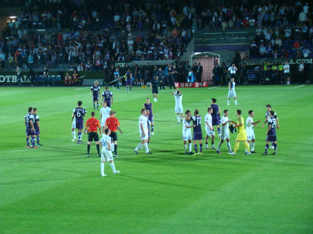Tanzende PolenEin Wort noch zu den knapp 1.000 Ruch-Anhängern, die mit Freunden von Widzew Lodz angereist waren: Egal, was im Vorfeld der Partie rund um das Stadion passiert war, so traurig es auch ist – jedoch jene Fans, die im Stadion waren, verhielten sich mustergültig, standen 90 Minuten wie ein Mann hinter ihrem Team, feuerten ihre Mannschaft unermüdlich an und regten in der zweiten Spielhälfte sogar das Wiener Publikum zur Welle an, die auch mehrmals gelang und durch das Stadion schwappte. Es entwickelte sich aufgrund des Gastvereins eine hervorragende Geräuschkulisse im weiten Rund, da die Veilchen schon wegen des lautstarken Gastes vehement dagegenhielten. Dies ging sogar soweit, dass es von der Nord-Tribüne mehrmals Szenen-Applaus für den Auftritt der Ruch-Anhänger in der West-Kurve gab, die diesen dann auch erwiderten. Und nach Spielschluss drehten die Veilchen ihre obligatorische Stadionrunde auch zum Gastverein hin und verneigten sich artig dankend für den tollen Support.