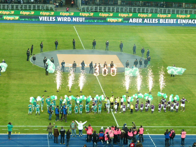 marschierten die aktuellen Akteure beider Wiener Großklubs, angeführt von Schiedsrichter Thomas Einwaller, zur runden Auflage des ewigen jungen 300. Duells ein.