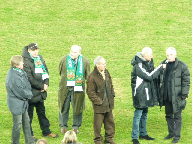 Das Intro wurde gut vorbereitet und nachdem RAPID-Plaudertasche und Stadion-Moderator Andy Marek grüne Derby-Größen von einst vor dem Mikrophon hatte –