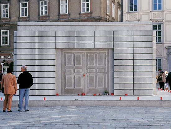 Das Mahnmal für die österreichischen Opfer der Schoah, entworfen von der britischen Bildhauerin Rachel Whiteread, stellt eine nach außen gestülpte Bibliothek dar. Rund um das Mahnmal sind jene Orte festgehalten, an denen 65.000 österreichische Juden von den Nationalsozialisten umgebracht wurden.