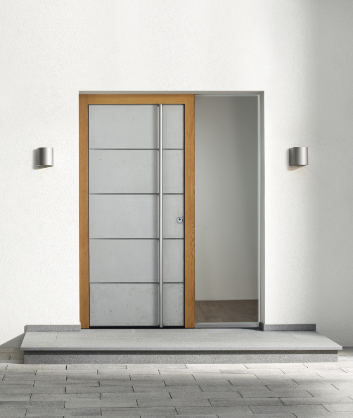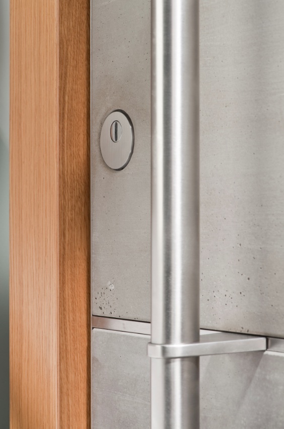 Zusammenarbeit mit Industrie-Designer Christoph Kahleyss entwickelte „Concrete“, konnte die strenge Jury durch den Materialmix aus Holz und Beton für sich gewinnen. Das Siegermodell vereint modernste Sicherheitstechnologie mit individuellem Design. Die fünf Betonplatten erzielen durch die materialtypischen Fugen eine schlichte und einheitliche Wirkung. Der in Holz gehaltene Rahmen erzeugt in Kombination mit dem faserverstärkten Beton ein kontrastreiches Gesamtbild. Das Holz setzt dem kalten und harten Beton etwas Warmes, Weiches entgegen. Der kräftige Stangengriff ergibt zudem eine elegante und logische Ergänzung. Optional ist das Siegermodell „Concrete“ auch mit gläsernem Seitenteil erhältlich.